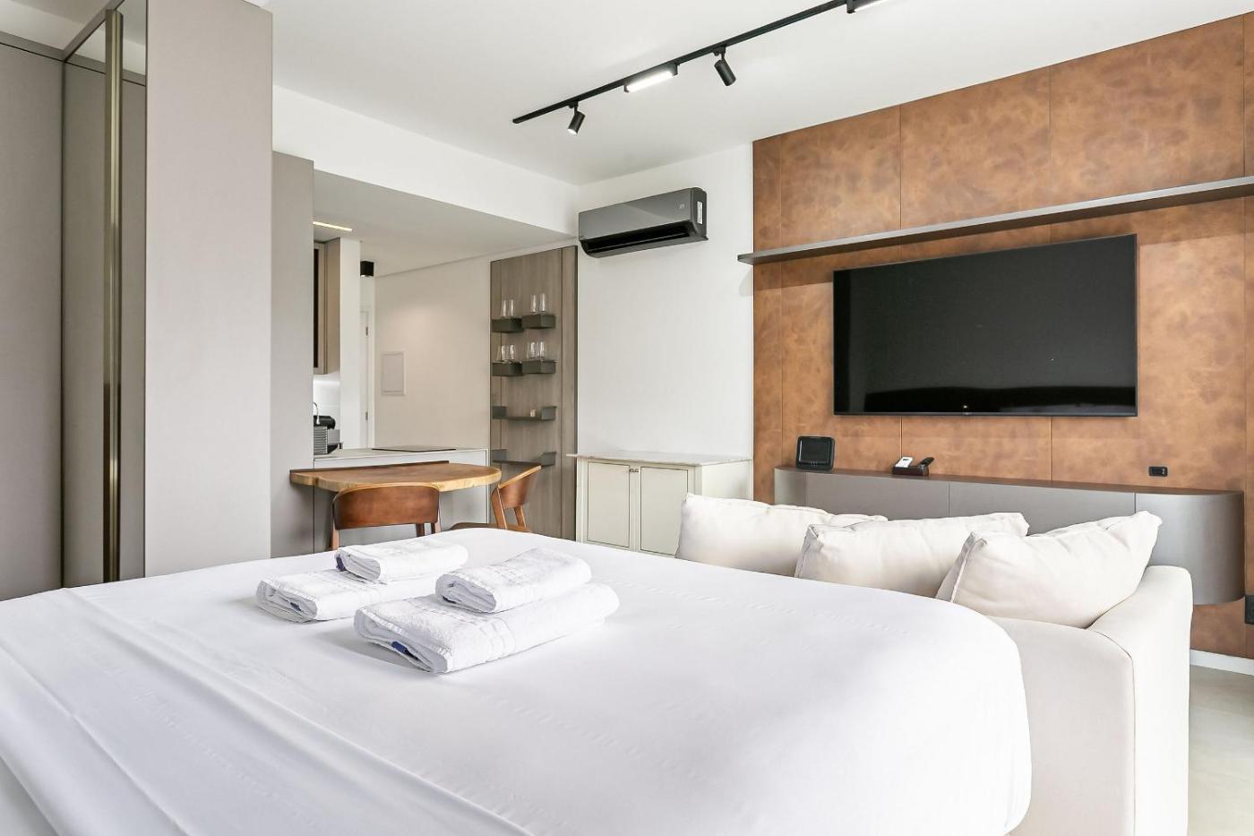 Studio Apartment. In the kitchen, guests will find a stovetop, a refrigerator, kitchenware and an oven. The air-conditioned studio offers a flat-screen TV, a coffee machine, a seating area, a dining area as well as ancourtyard view. The unit has 1 bed.