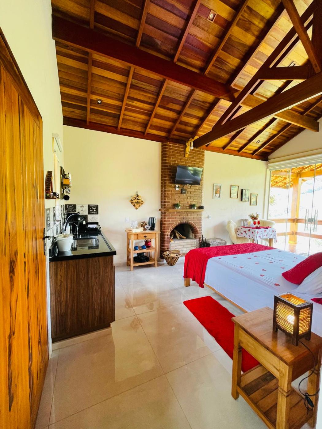 Boasting mountain views, Chalés Vale das Araucárias Bairro dos Onças provides accommodation with a balcony and a coffee machine, around 47 km from Municipal Stadium Verner Grimberg Monte Verde.46 km from Celeiro Shopping Monte Verde, the property offers a garden and free private parking.