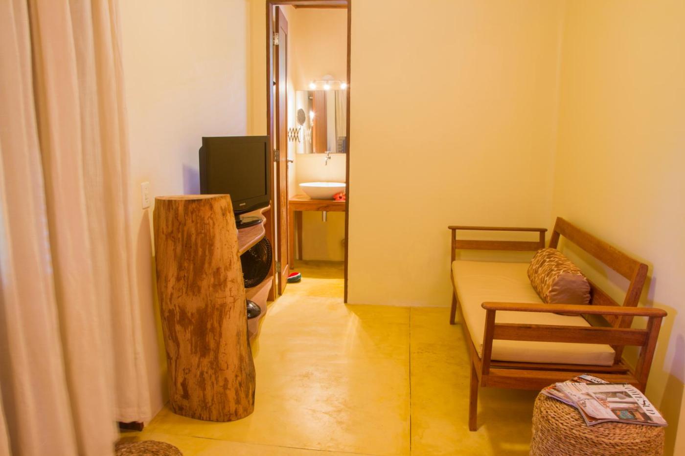 Deluxe Two-Bedroom Apartment with Garden View. Apartamento de 2 Quartos This 2-bedroom apartment have 1 bedroom with a bathroom and air conditioning, 1 air-conditioned suite, 2 queen size beds, mosquito net, safe, hairdryer, refrigerator. Hot water produced by solar panels. TV in the dining room. The private bathroom has a hot shower and includes LOccitane au Bresil free toiletries. WiFi is free. Veranda overlooking the garden and hammock. ;