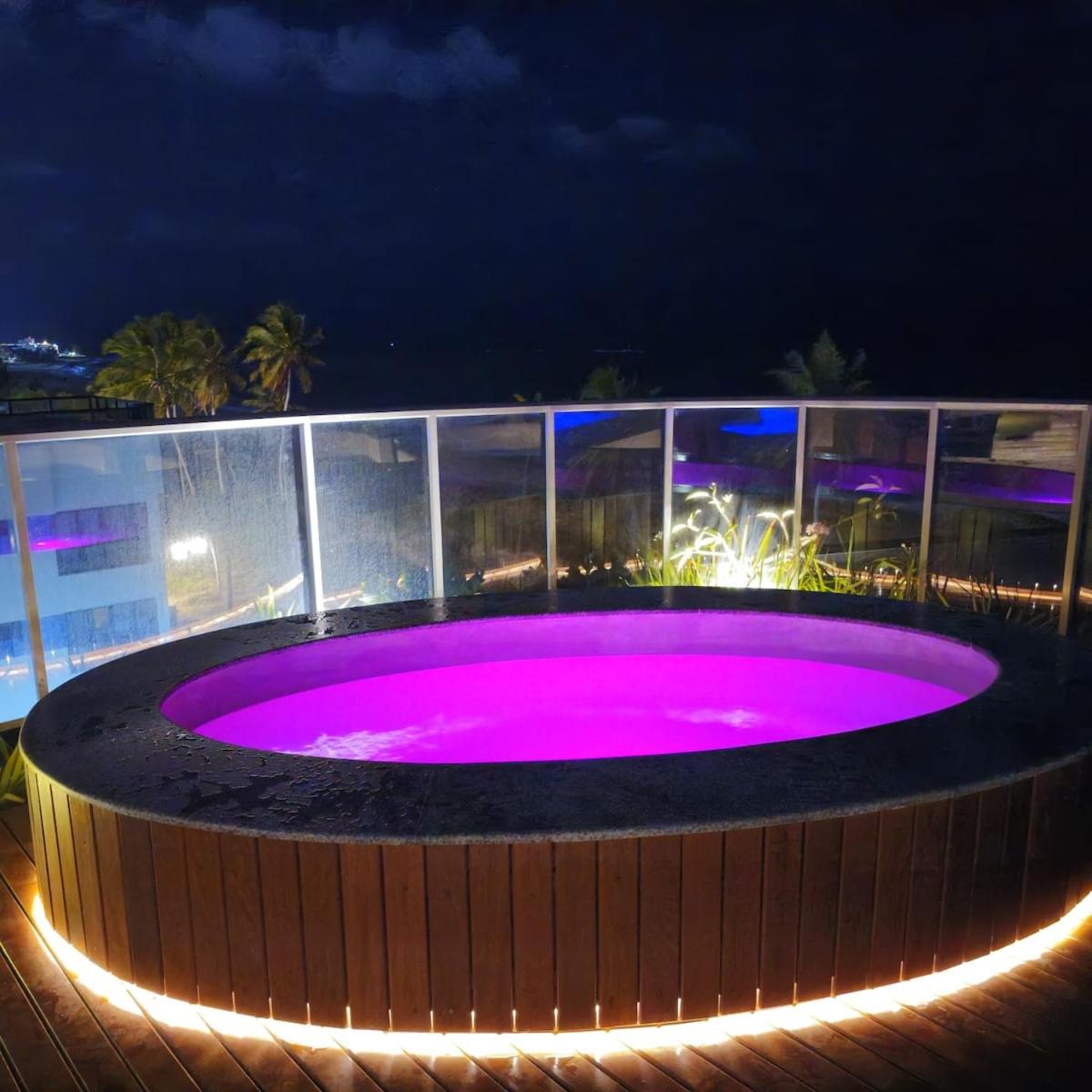 Situated in João Pessoa, Studio - PÉ NA AREIA - Super Class - 3 Pessoas offers a balcony with sea and pool views, as well as a year-round outdoor pool, sauna and hot tub. This beachfront property offers access to a terrace, free private parking and free WiFi. The accommodation features a 24-hour front desk, a lift and luggage storage for guests.