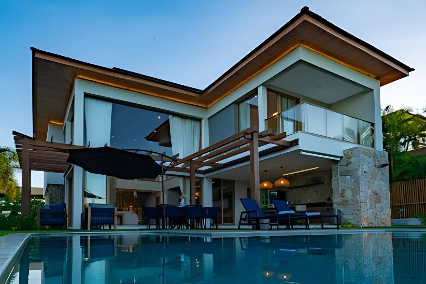 Six-Bedroom House. This apartment features a private pool. The air-conditioned apartment has 6 bedrooms, 8 bathrooms, a kitchen and a seating area. The apartments kitchen is available for cooking and storing food. Boasting an outdoor dining area, this apartment also features a washing machine, a barbecue and a flat-screen TV. The unit has 6 beds.