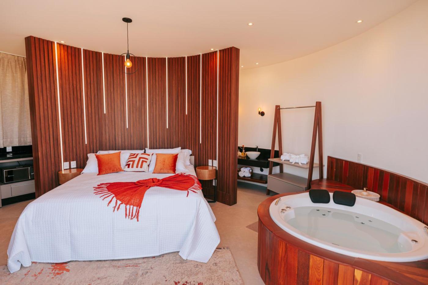 Deluxe King Room. Guests will have a special experience as this double room provides a hot tub and a fireplace. In the kitchen, guests will find a stovetop, a refrigerator, kitchenware and a microwave. The spacious double room offers air conditioning, a private entrance, a balcony with garden views as well as a private bathroom featuring a bath. The unit offers 1 bed. ;