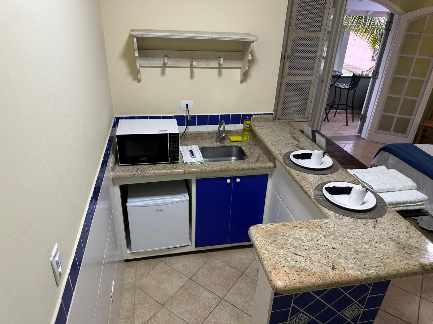 Suite. The air-conditioned suite has 1 bedroom and 1 bathroom with a walk-in shower and a hairdryer. The suites kitchenette, which features kitchenware and a microwave, is available for cooking and storing food. The suite offers a flat-screen TV with streaming services, a minibar, a wardrobe and a tiled floor. The unit has 1 bed. ;