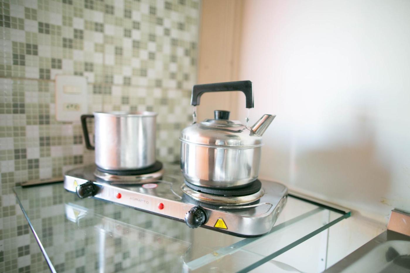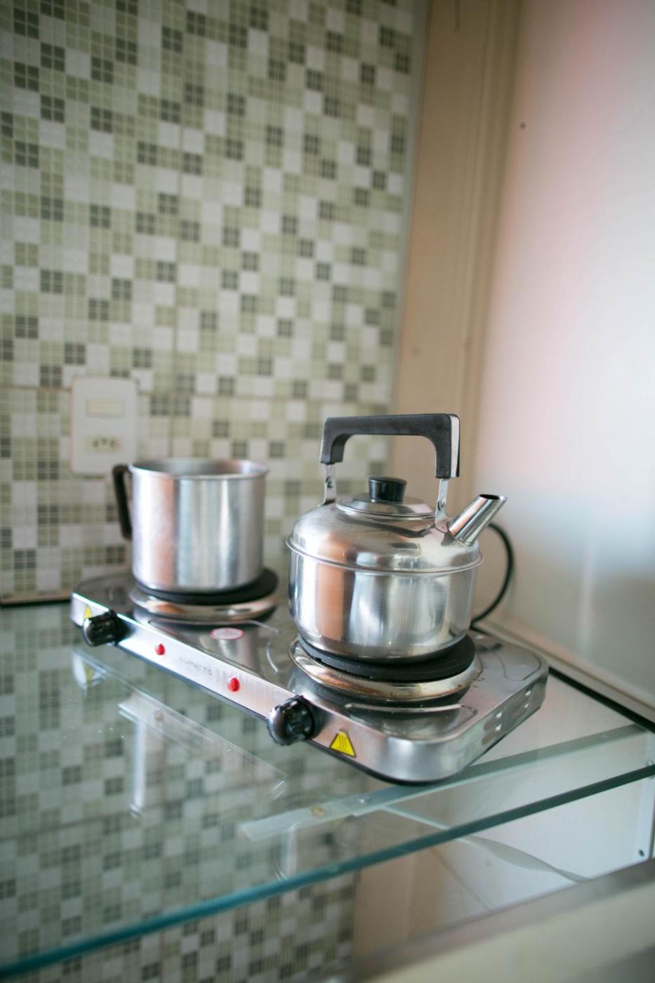 Studio. The studio provides air conditioning and a washing machine, as well as a private bathroom featuring a shower. The well-fitted kitchen features a stovetop, a refrigerator, kitchenware and a microwave. This studio offers a tea and coffee maker and a flat-screen TV. The unit offers 2 beds and 2 futons.
