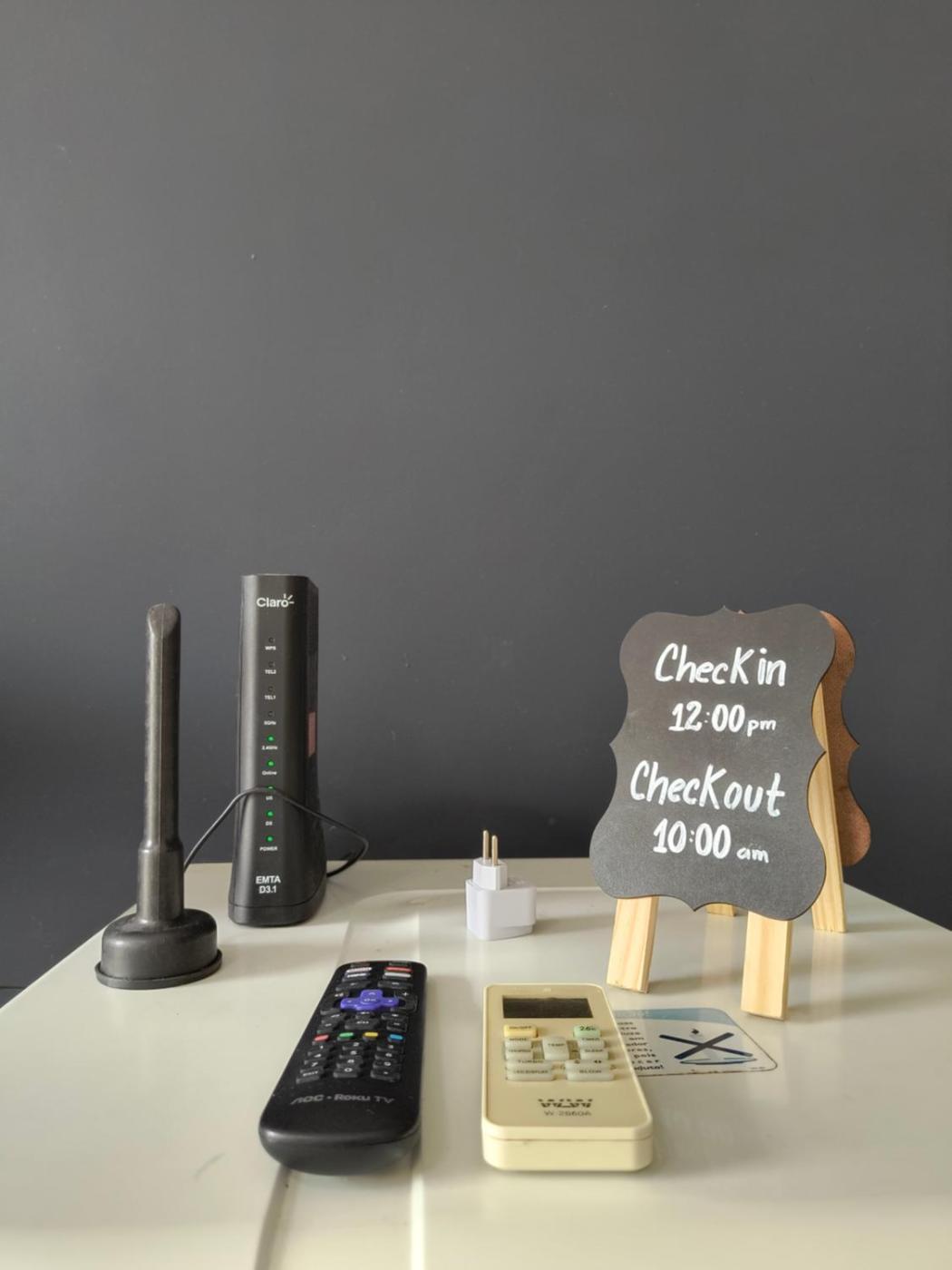 Shared stationery such as printed menus, magazines, pens, and paper removed