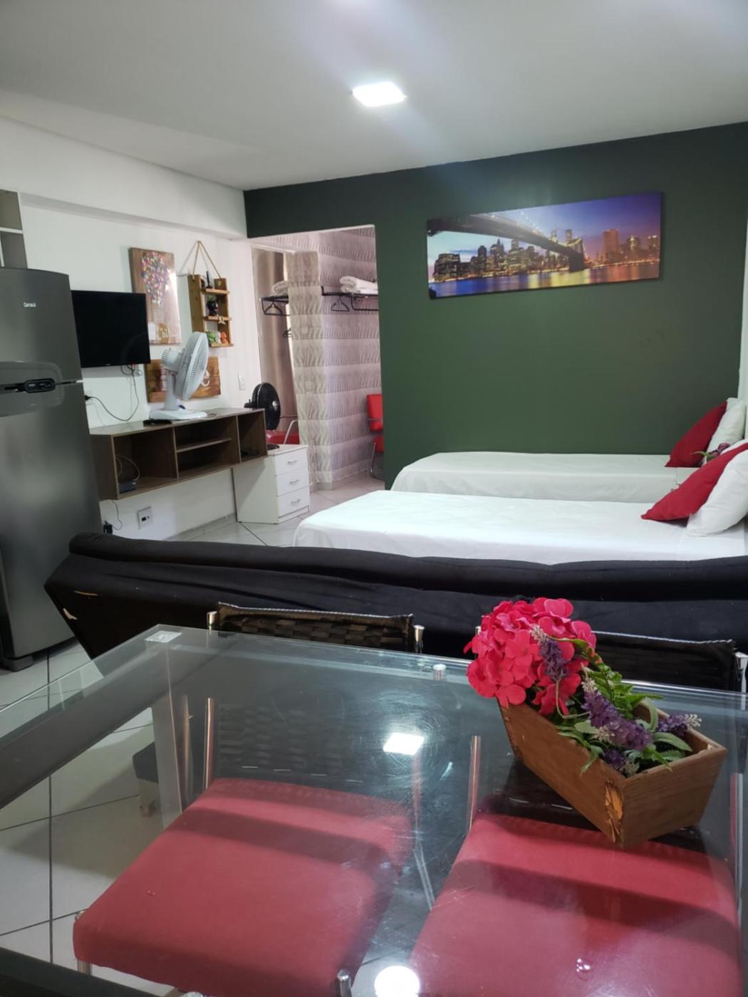 Studio Apartment. This apartment is comprised of 1 living room, 1 separate bedroom and 1 bathroom with a shower. Guests can make meals in the kitchen that comes with a stovetop, a refrigerator, kitchenware and a microwave. This apartment offers a flat-screen TV. The unit offers 2 beds.