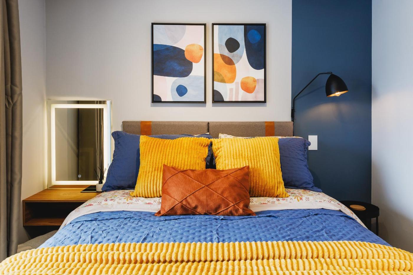 One-Bedroom Apartment. The air-conditioned apartment has 1 bedroom and 1 bathroom with a shower and a hairdryer. In the fully equipped kitchen, guests will find a stovetop, a refrigerator, kitchenware and a microwave. Boasting a balcony with ancourtyard view, this apartment also offers a washing machine and a flat-screen TV with streaming services. The unit has 1 bed.
