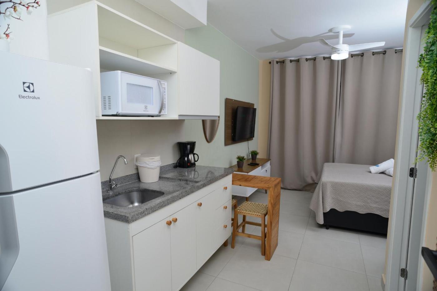 One-Bedroom Apartment. This apartment features 1 bedroom, kitchen, a terrace and 1 bathroom with a shower. Guests can make meals in the kitchen that features a stovetop, a refrigerator, kitchenware and a microwave. Boasting a balcony with garden views, this apartment also features a minibar and a flat-screen TV. The unit has 1 bed.