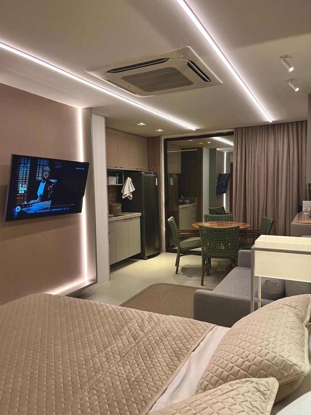 One-Bedroom Apartment. Guests can make meals in the kitchen that is fitted with a stovetop, a refrigerator, kitchenware and a microwave. This studio has air conditioning, a dining area, a TV and a balcony. The unit has 2 beds.