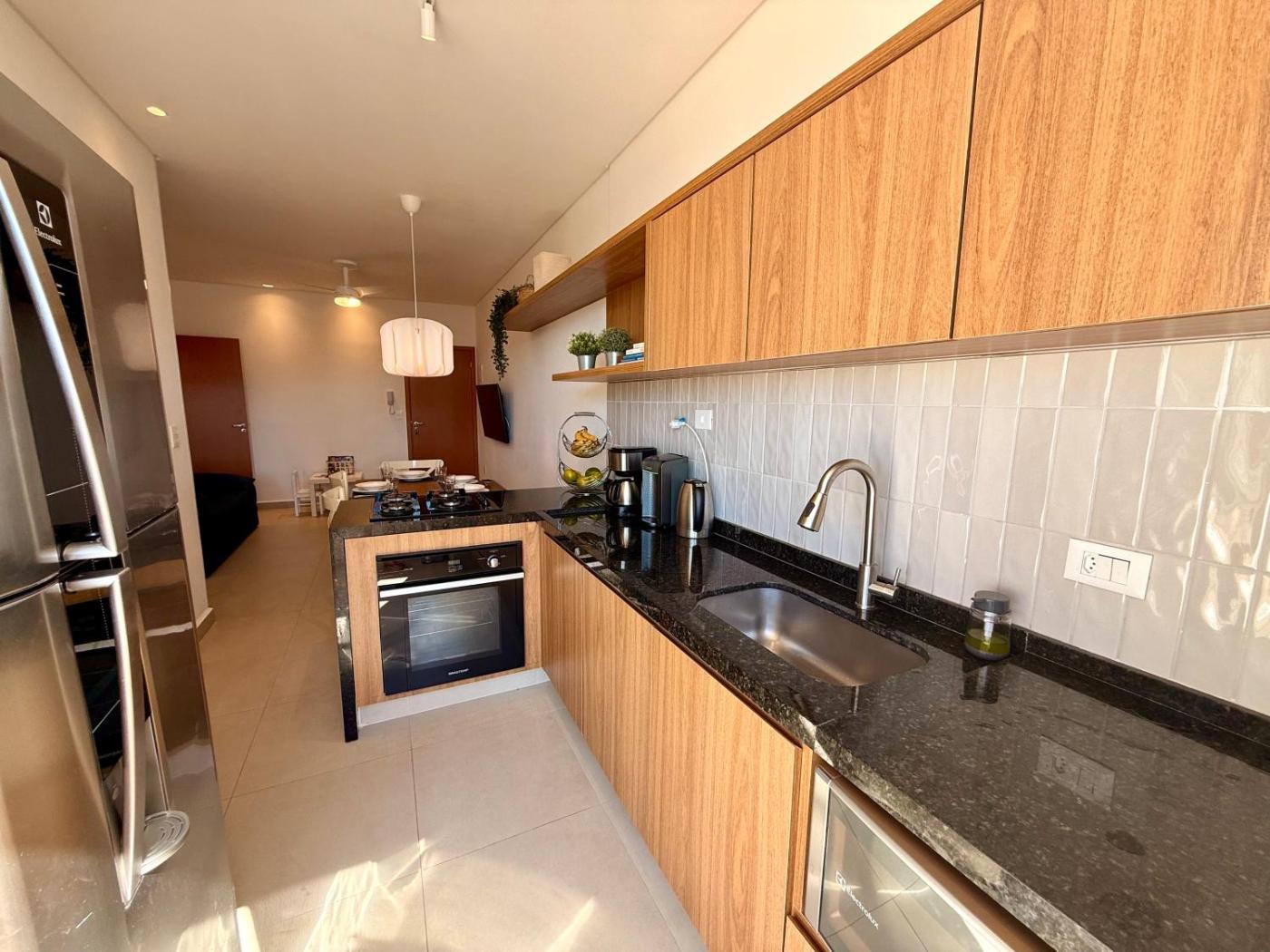 Apt Toninhas 4 min a pé até a praia, piscina, churrasqueira e ar condicionado